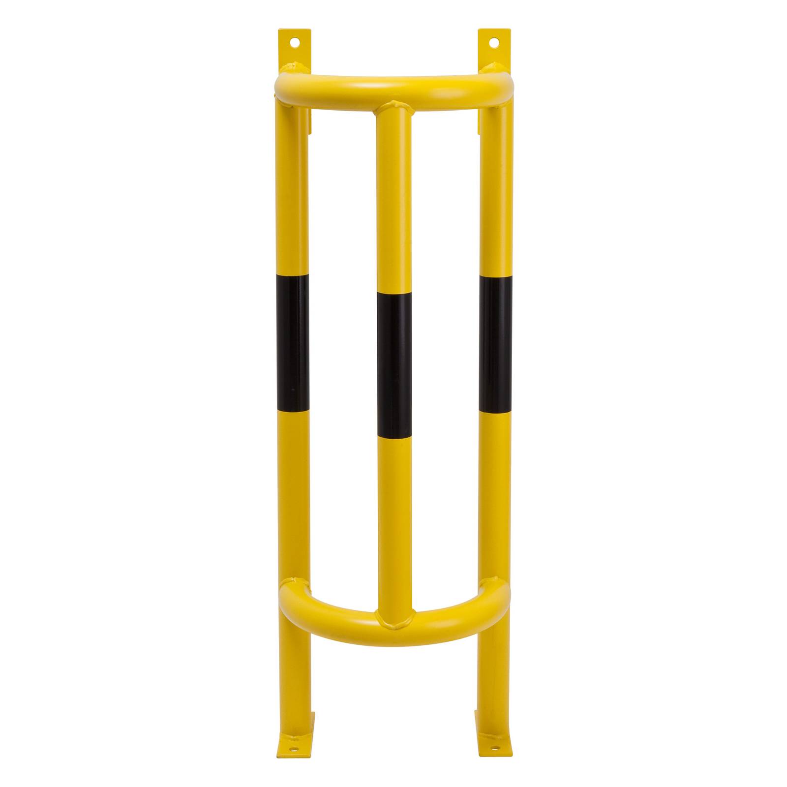 Barrera de protección cubre tuberías y bajantes en acero galvanizado lacado que envuelve y resguarda tuberías, bajantes pluviales, canalones y otros conductos contra rozaduras y choques accidentales producidos por vehículos al maniobrar.