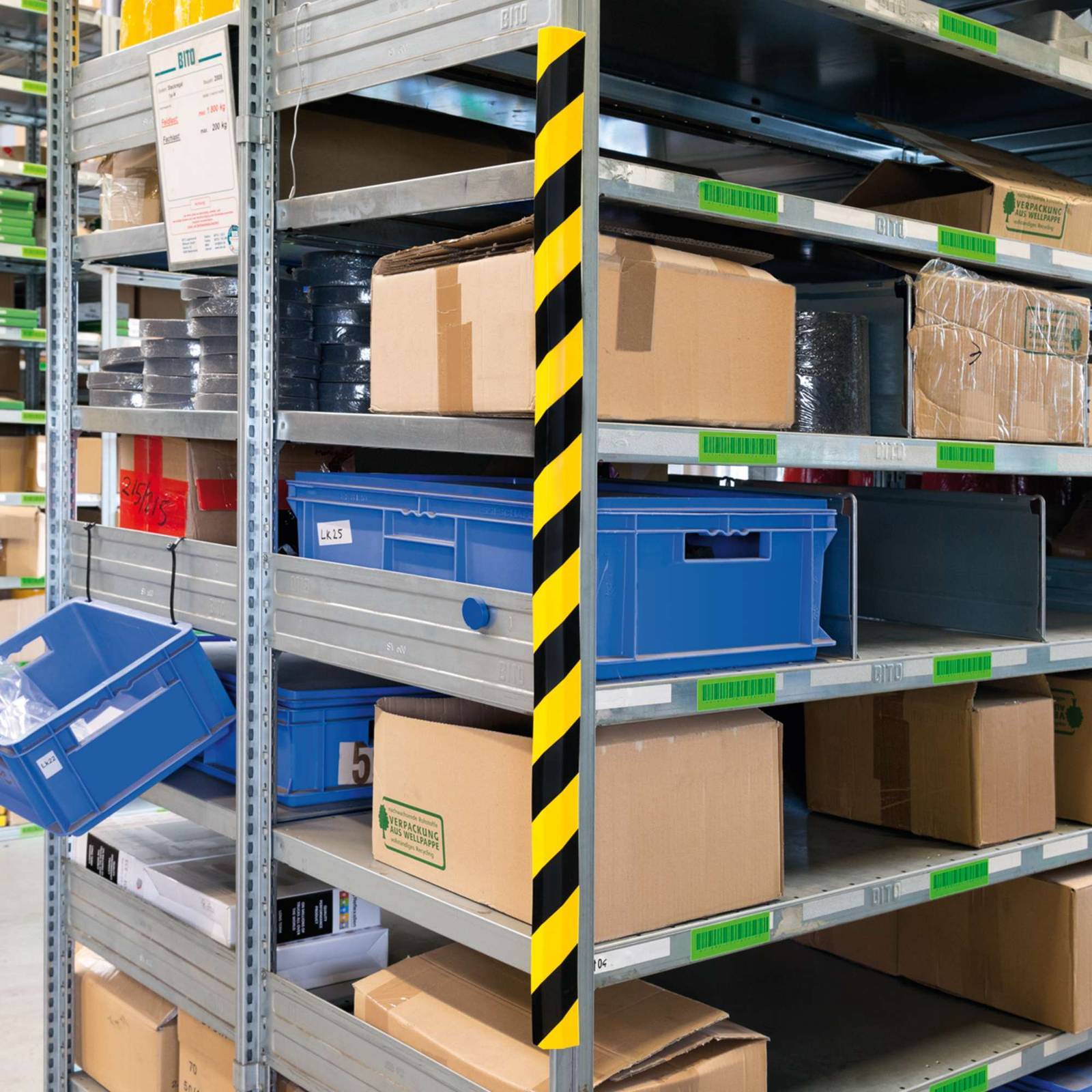 Gama de cantoneras protectoras de espuma para vigas, perfil H, puntales, etc., de 10 mm a 20 mm de grosor, que protege personas y objetos contra choques, golpes, rasguños, arañazos o rozaduras accidentales. Se suministra en piezas de longitud 1 m