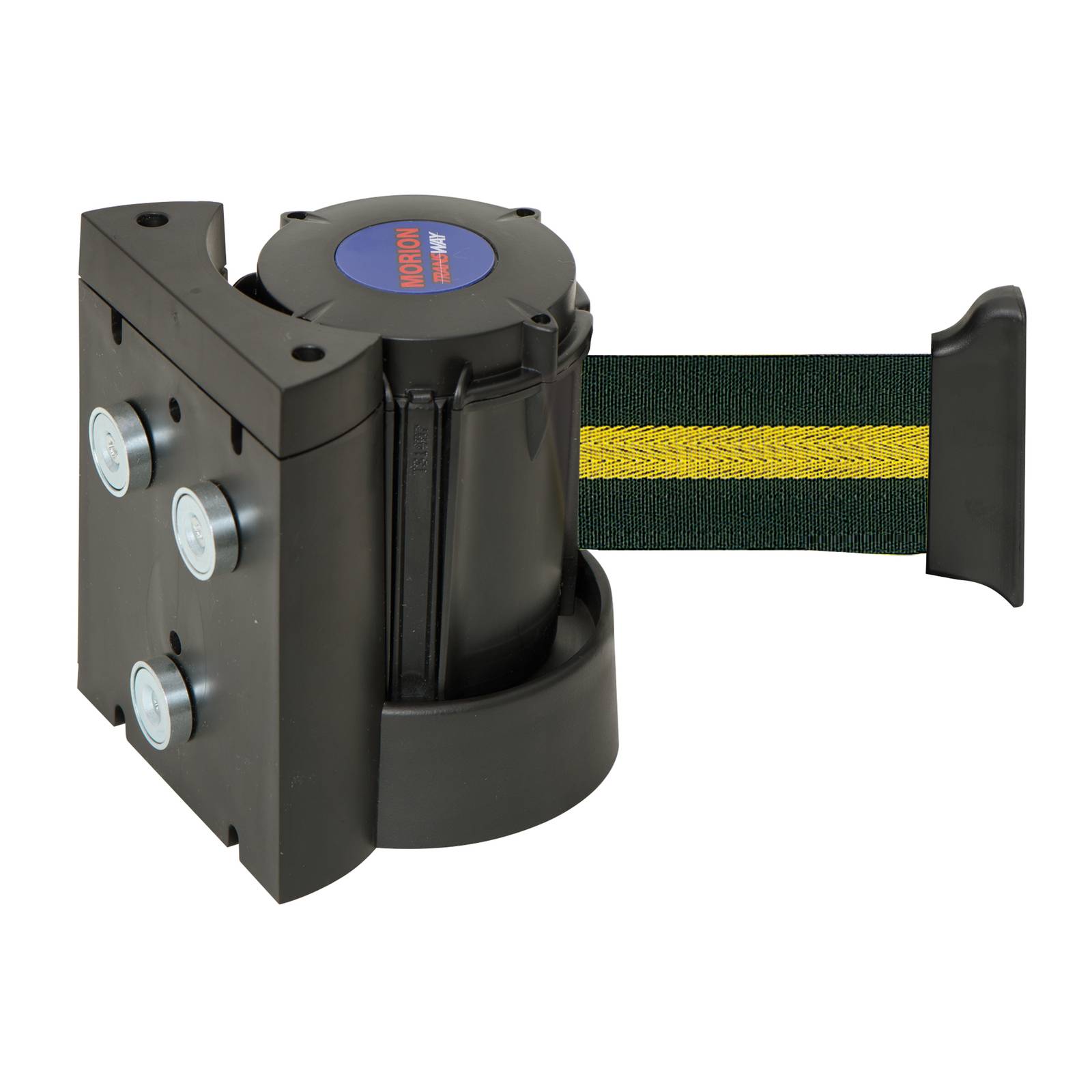 Cabezal con cinta extensible retráctil para montaje en pared, de cosido muy resistente para un uso intenso, ideal para prohibir el paso y controlar el acceso en pasillos, escaleras, puertas, maquinaria, etc.