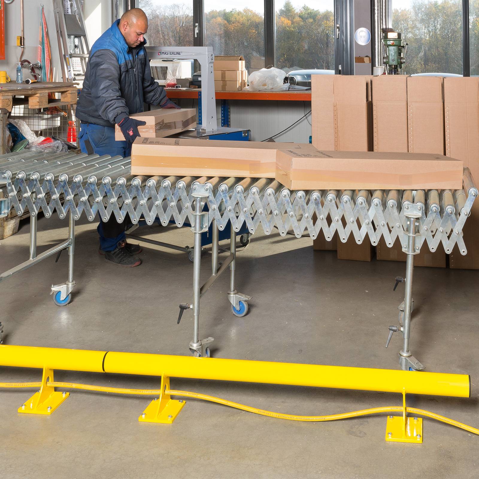 Pieza de unión para sistema barrera rodapié que permite instalar tramos de barrera formando una línea continua de protección.